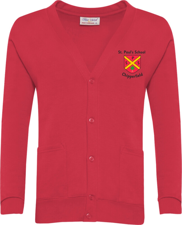 St Pauls CE VA Primary School Red Cardigan with logo
