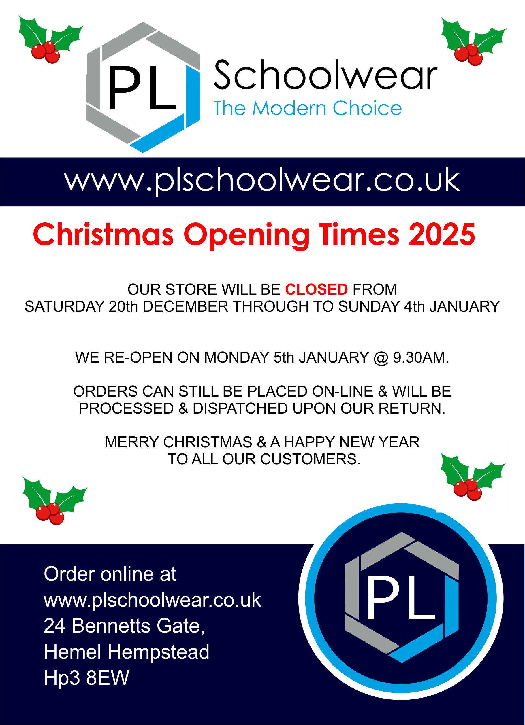 Any problems then please contact us on hemel@plschoolwear.co.uk.